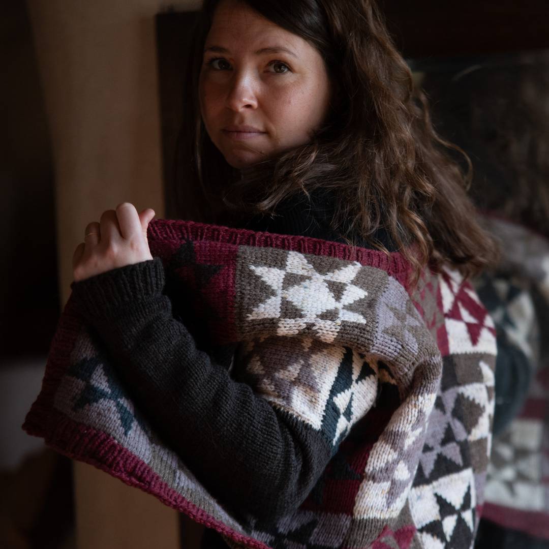 This is designed to feel like a comfy quilt draped as a sweater, but ease and fit are personal and up to you.