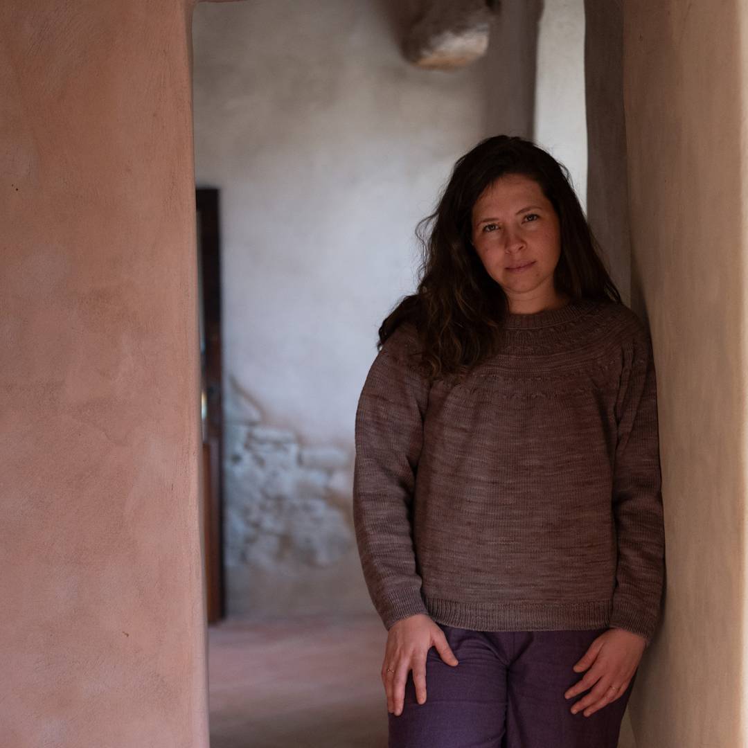 The Vildnis Sweater by Fiber Tales is a seamless top down sweater with a textured yoke.