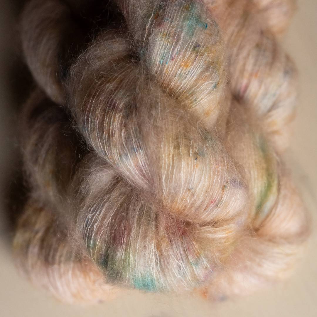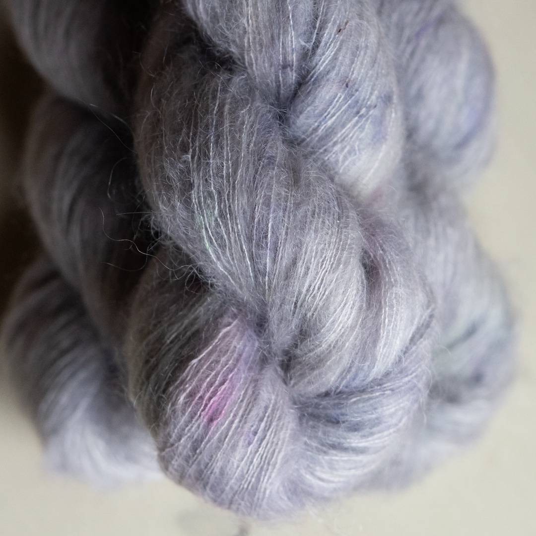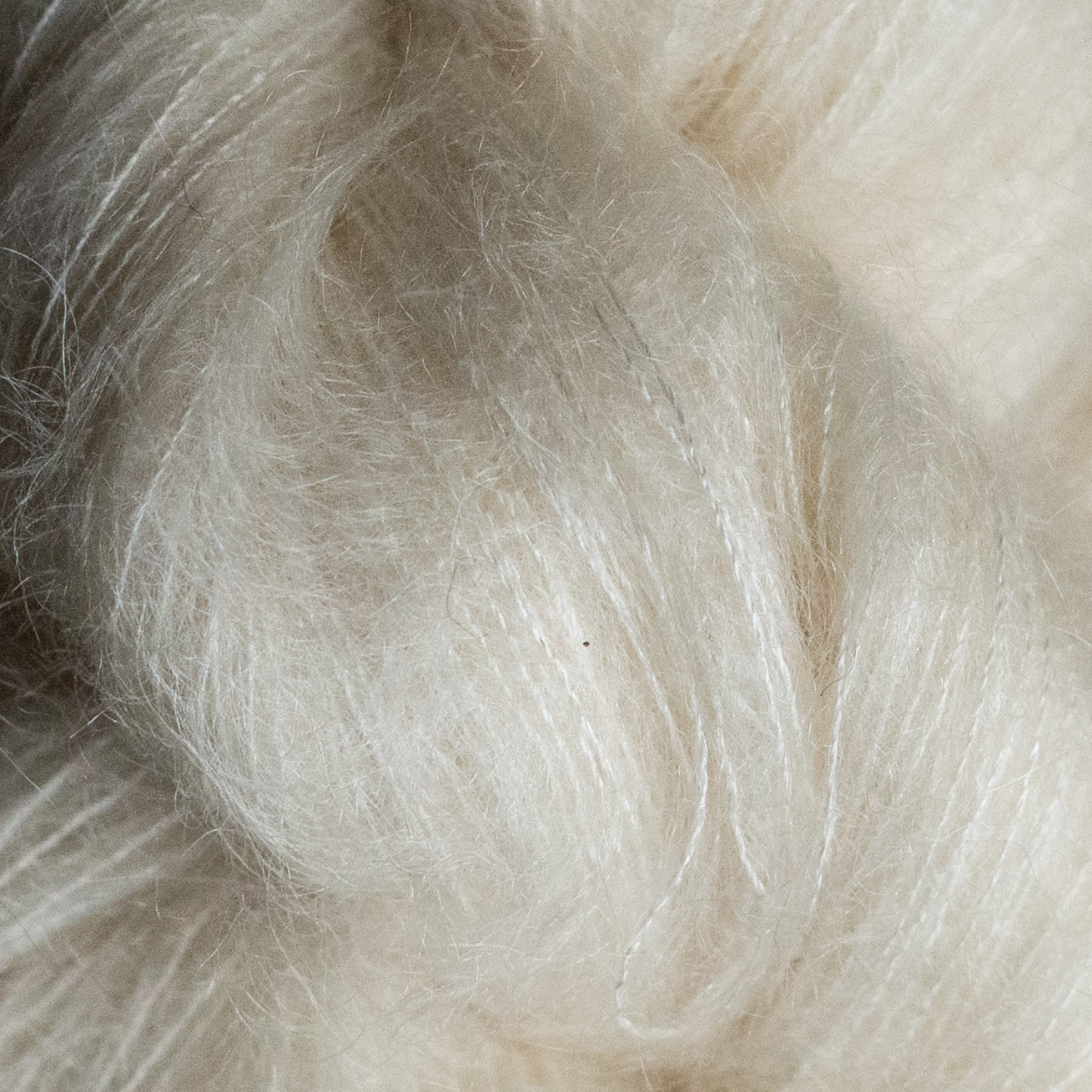 We had it spun Italy out of a shiny and superfine mohair fleece we gathered in a French small farm and untreated Schappe silk.
