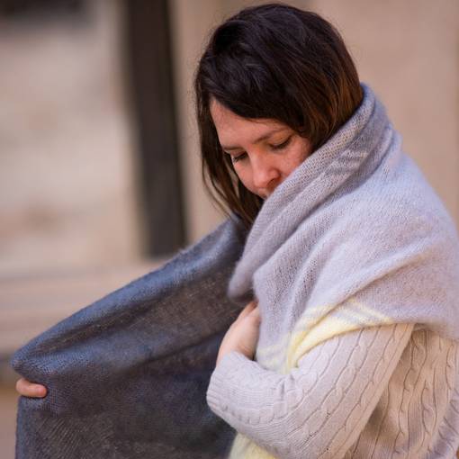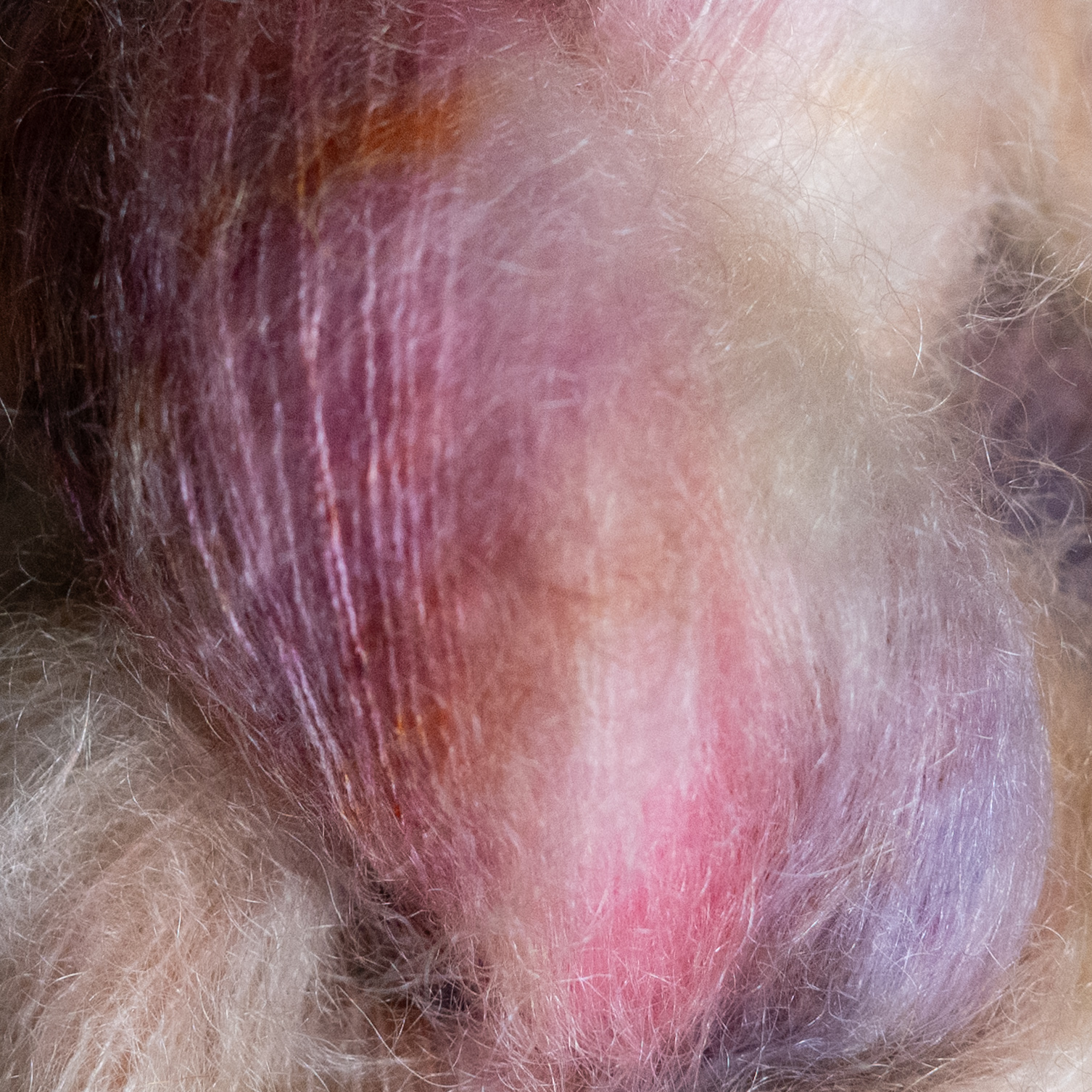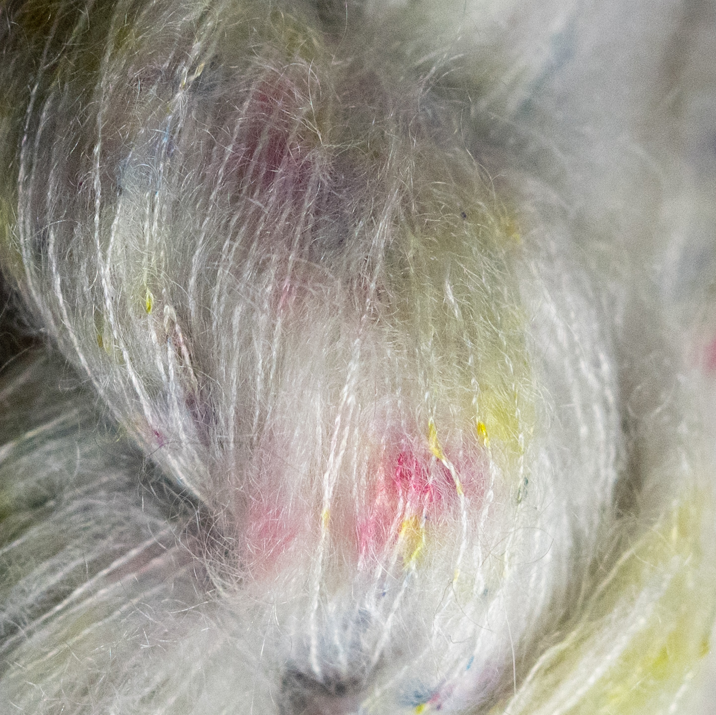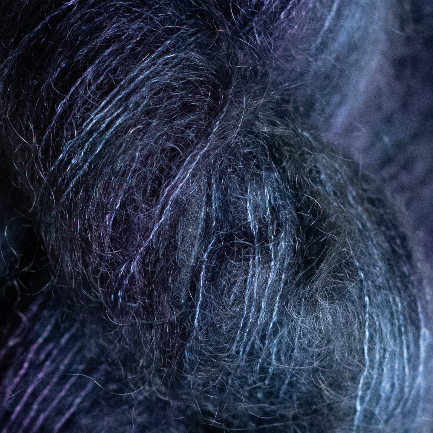 We had it spun Italy out of a shiny and superfine mohair fleece we gathered in a French small farm and untreated Schappe silk.