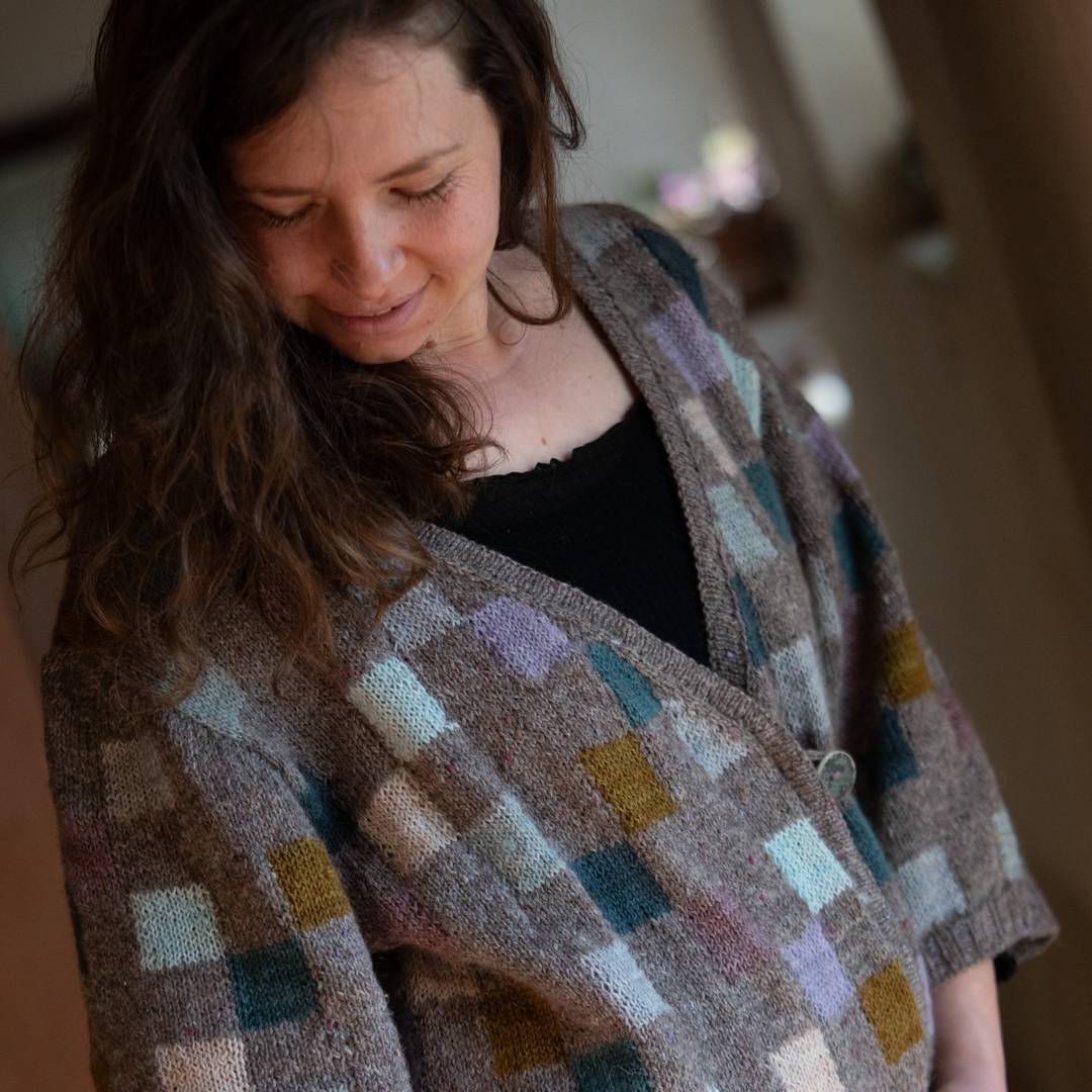 Nine Patch is a fun intarsia cardigan by Cocoknits .