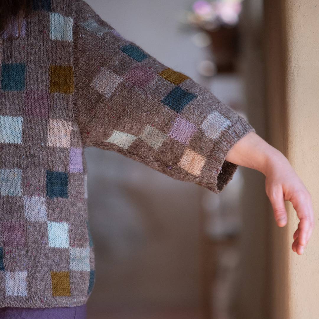 It's covered in quilt inspired checks - it’s perfect for playing with color or using leftover yarn... so that it immediately made us think of Chic MINIs!!