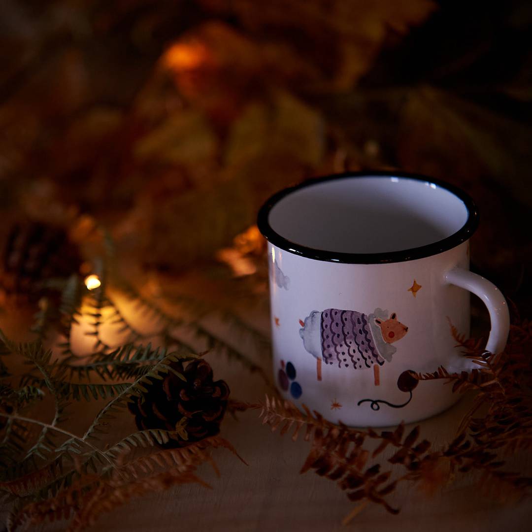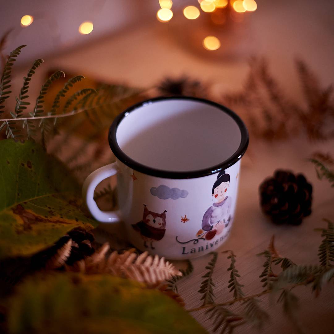 Questa tazza in metallo smaltato, è stata realizzata per noi da Alice Pasinetti in arte Littlepinealice