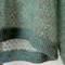 The large and dramatic sleeves are stylishly gathered at the cuff, and the sweater is embellished by a large collar with a frilly scalloped edge.
