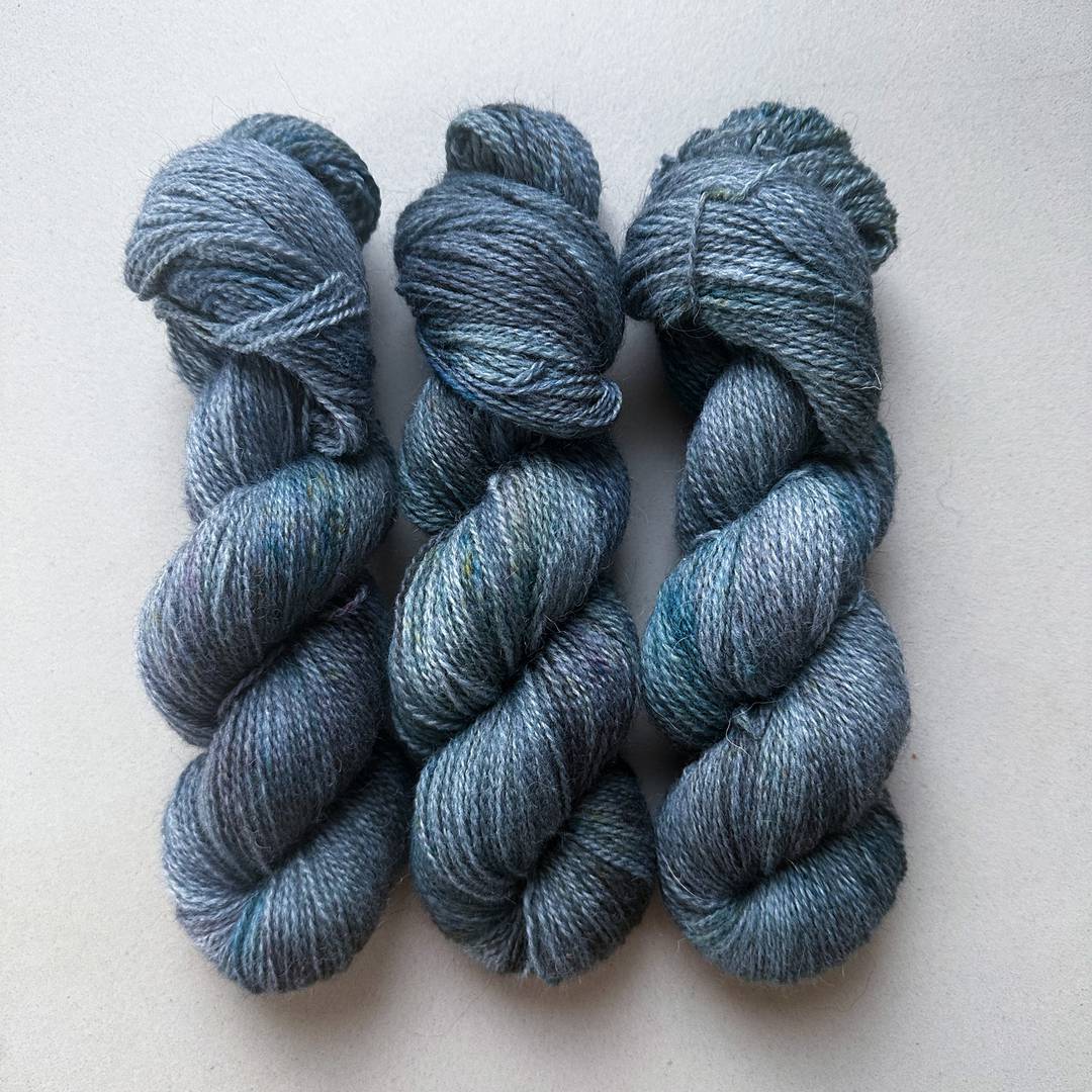 Composed of undyed italian fine fibres: wool and alpaca. This yarn comes in shades of grey and fawn, created to balance and highlight our hand dyed palettes. Fibres are blended and worsted spun in local small mills near Biella. A traceable, small scale production to create an artisan exquisite yarn. it comes in 2ply skeins 50g fingering weight
