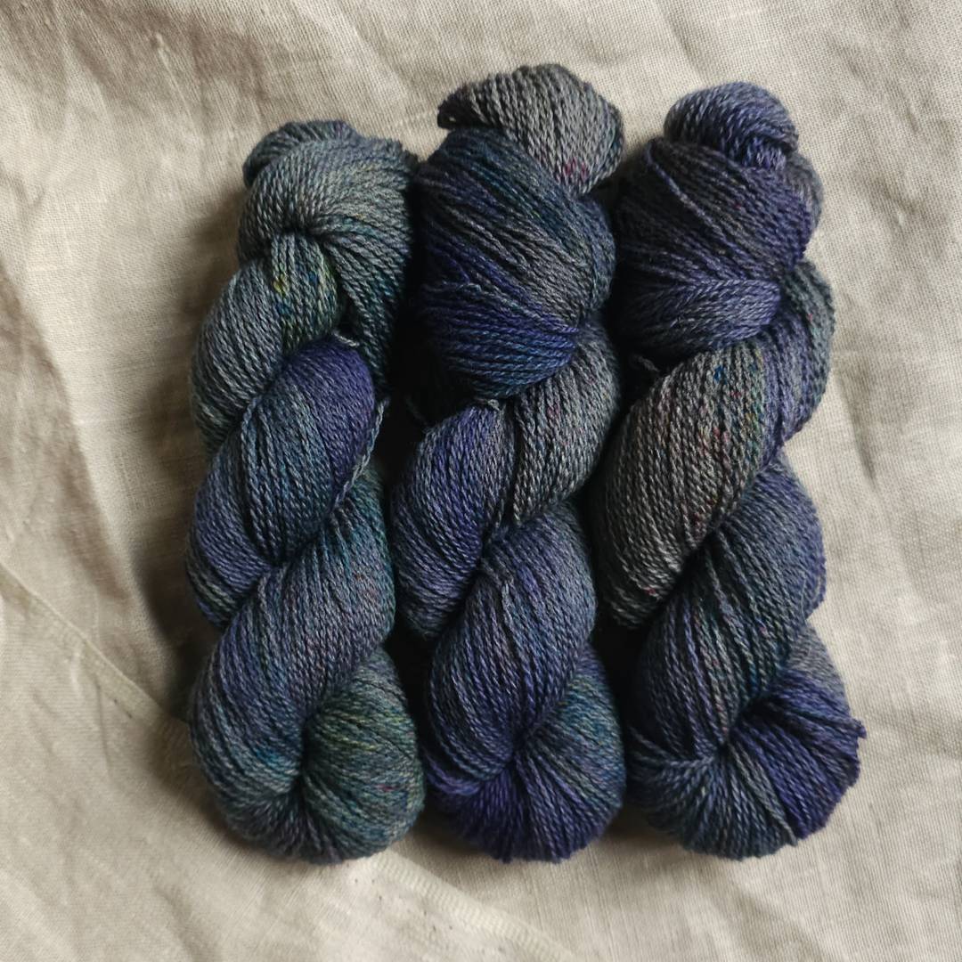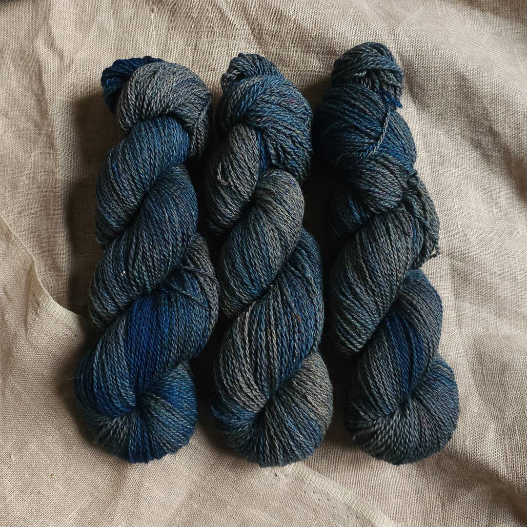 We had a small batch of A Stormy Blend fingering Ombra left and we decided to dye it two nighty colours!