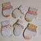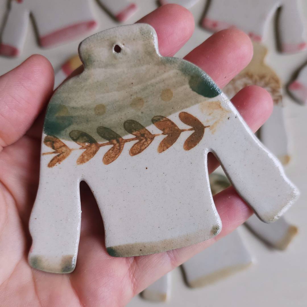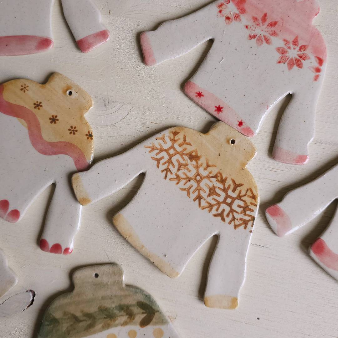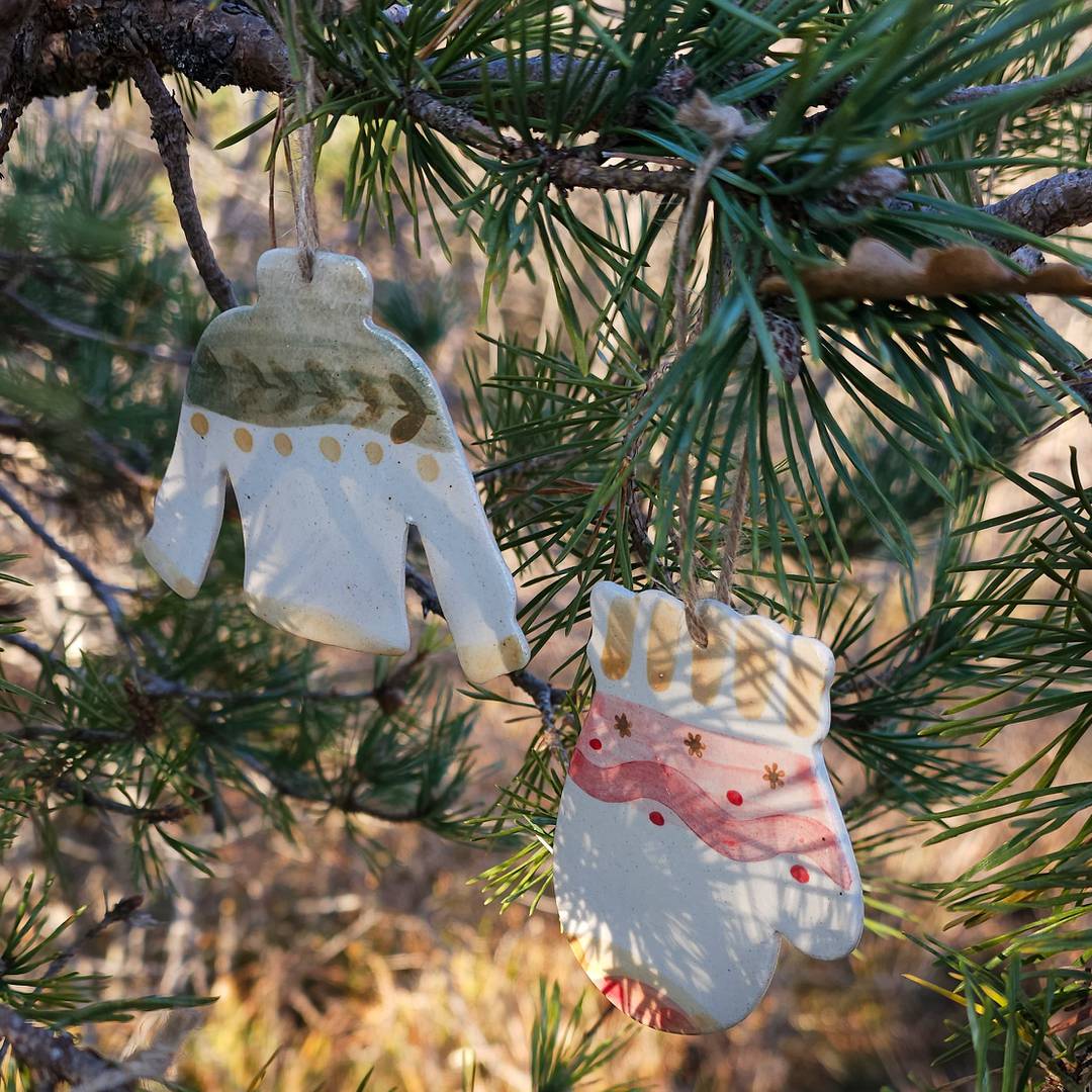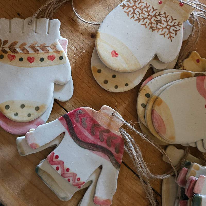 Deva created these little mittens and jumpers out of clay, that was then handpainted.