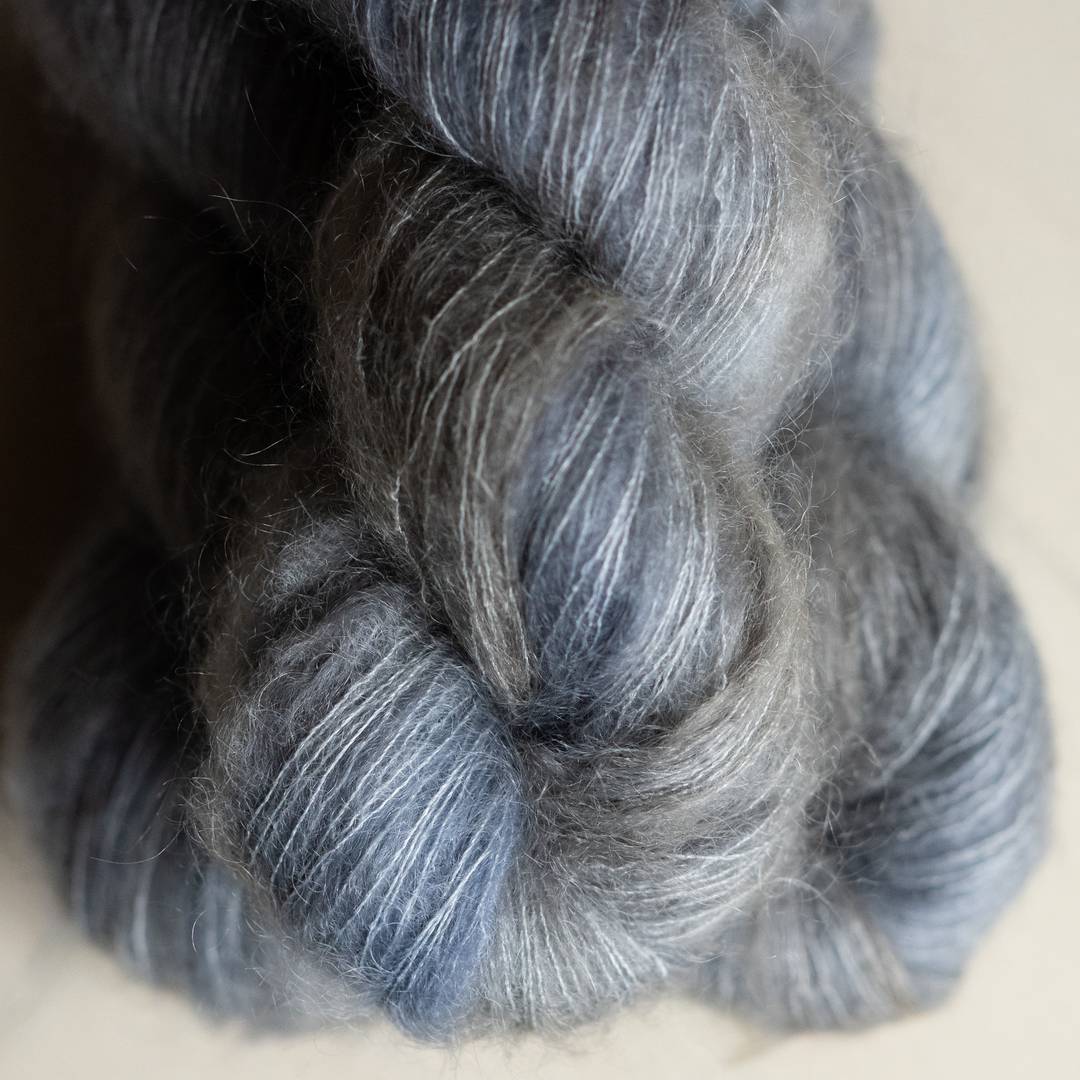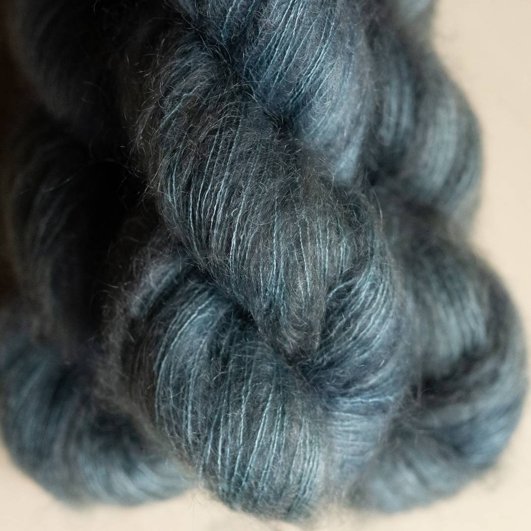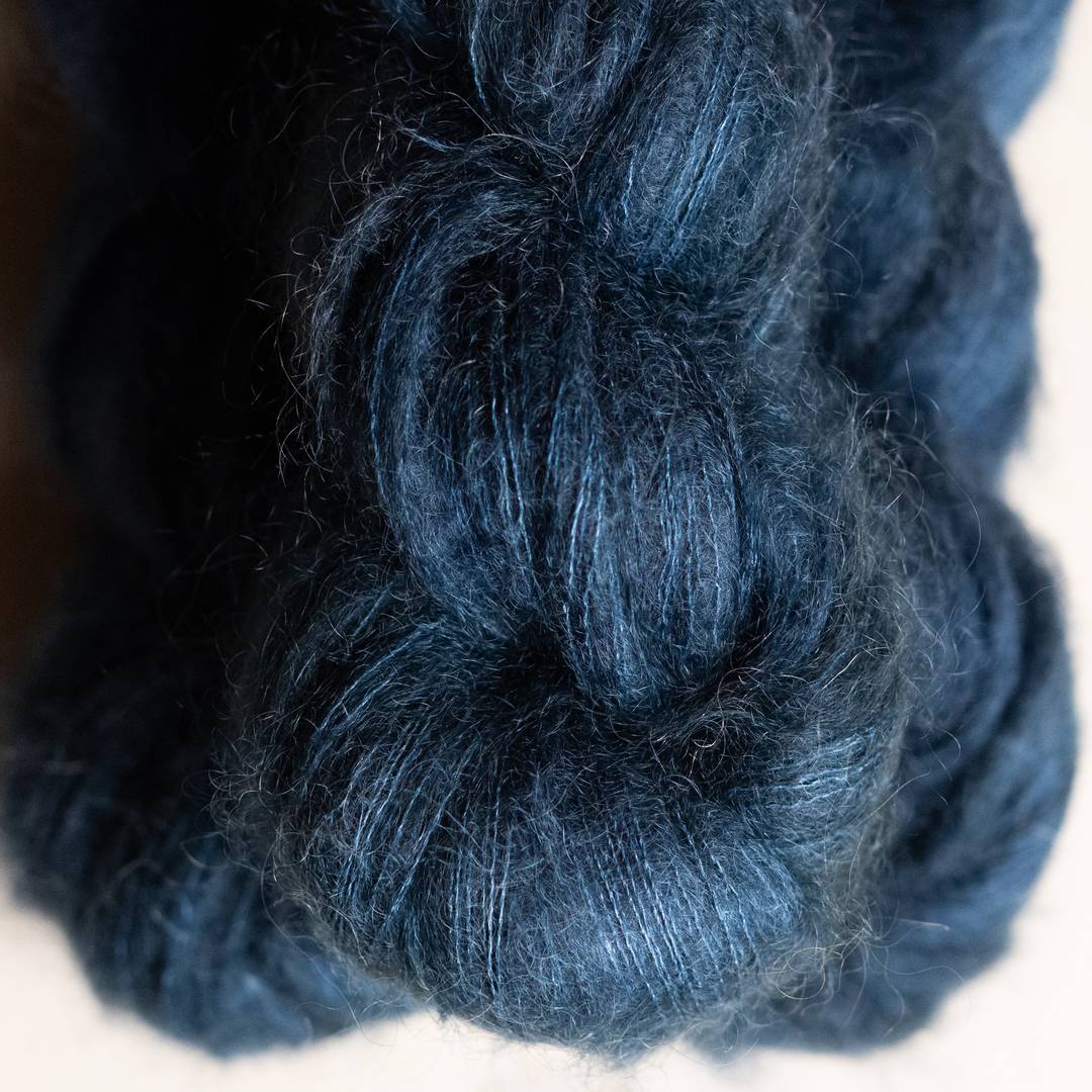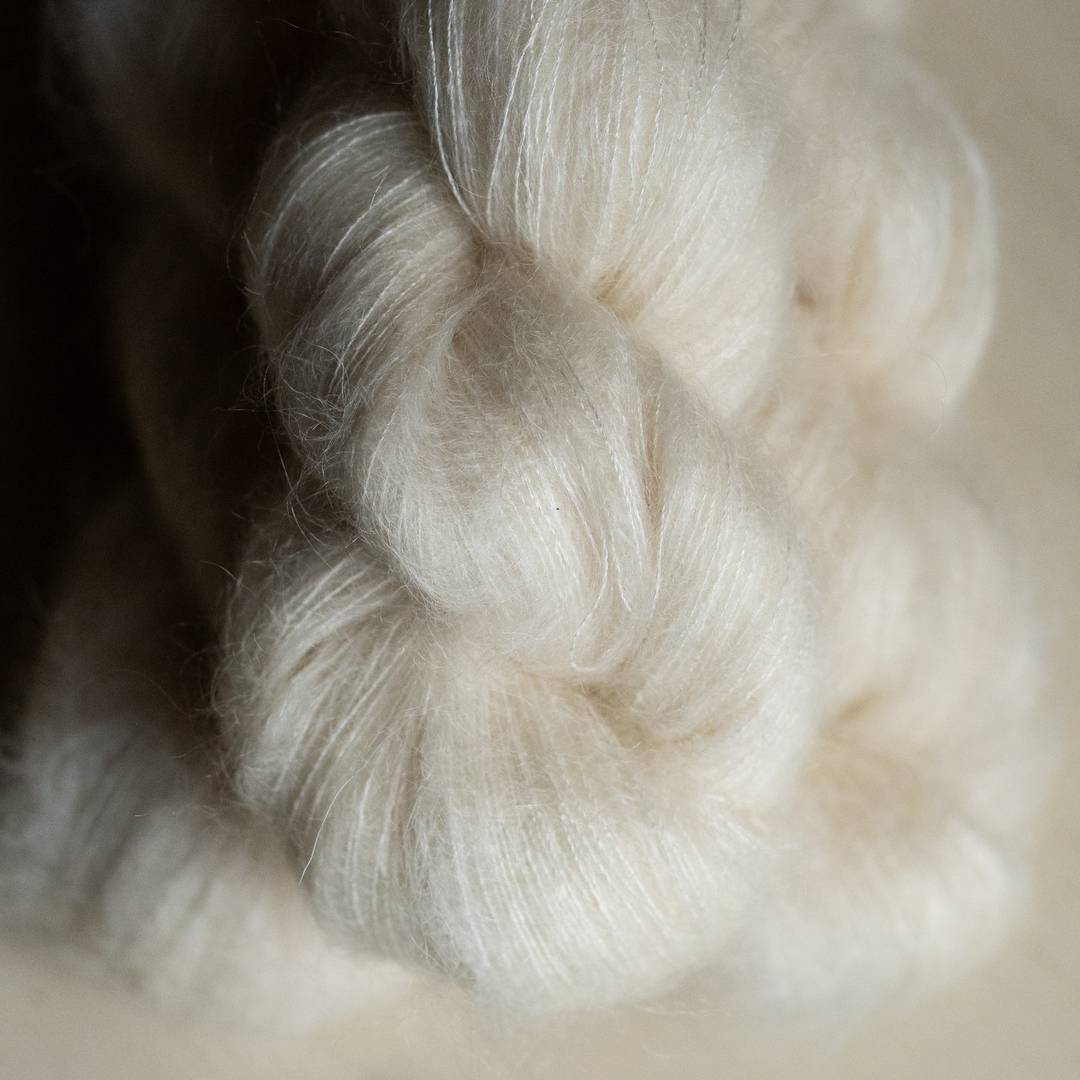 We had it spun Italy out of a shiny and superfine mohair fleece we gathered in a French small farm and untreated Schappe silk.