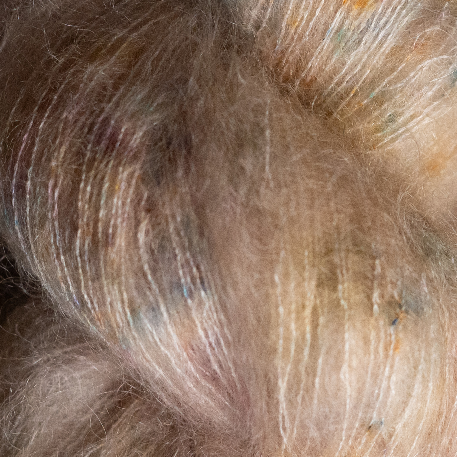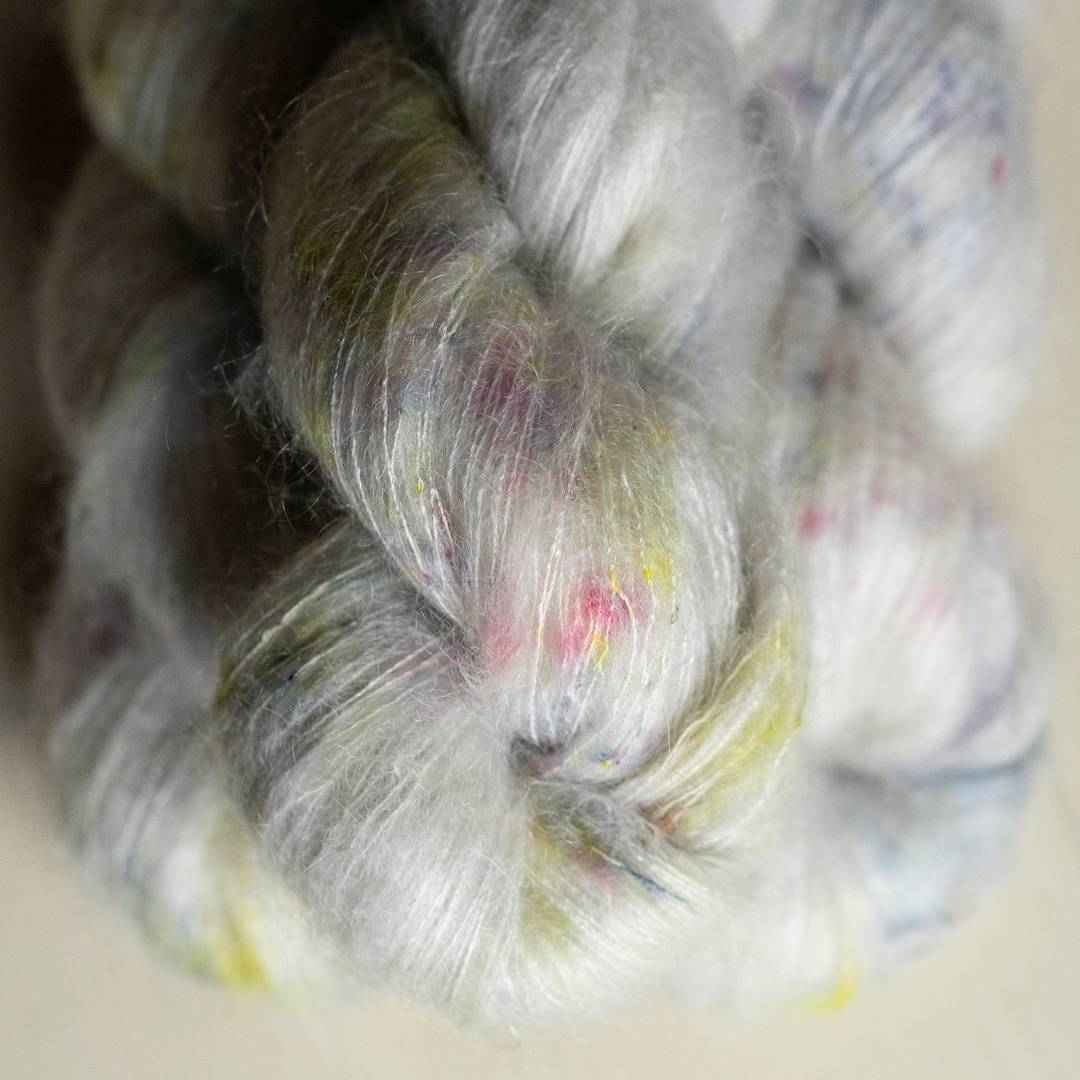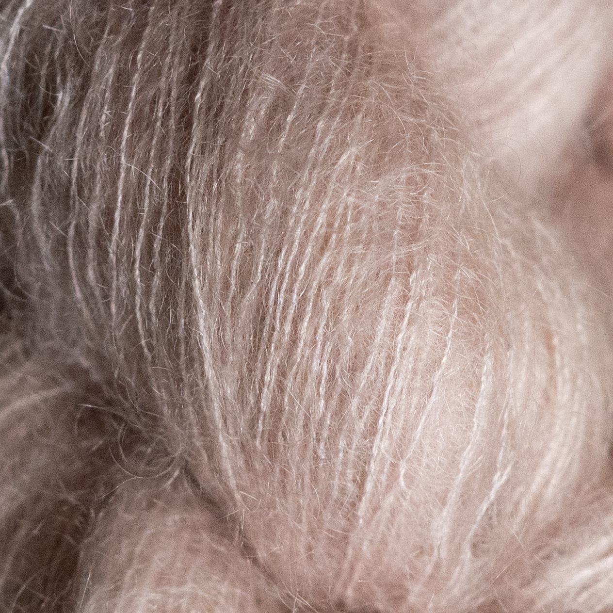 We had it spun Italy out of a shiny and superfine mohair fleece we gathered in a French small farm and untreated Schappe silk.