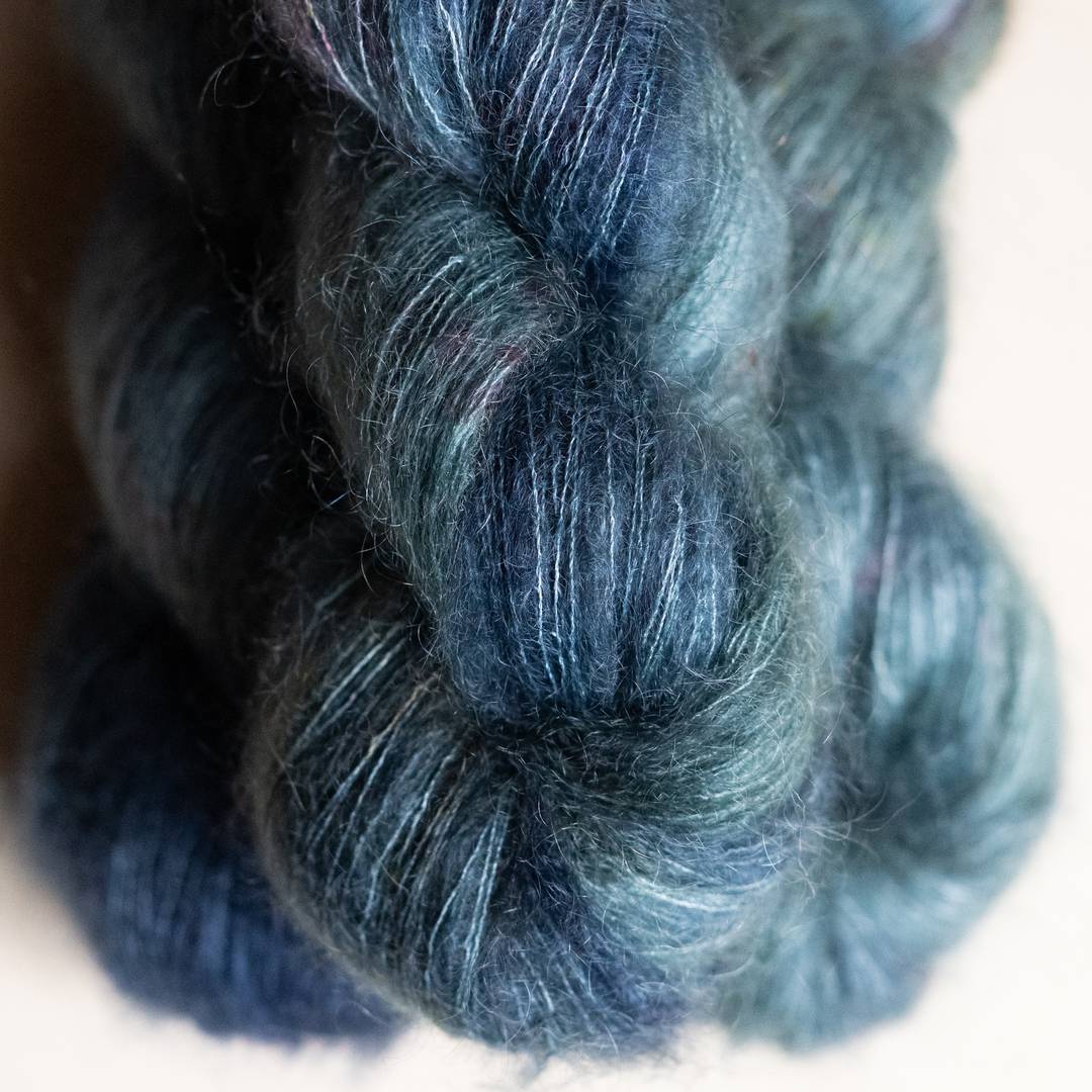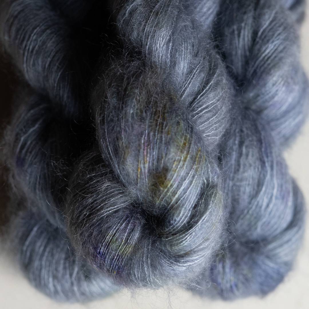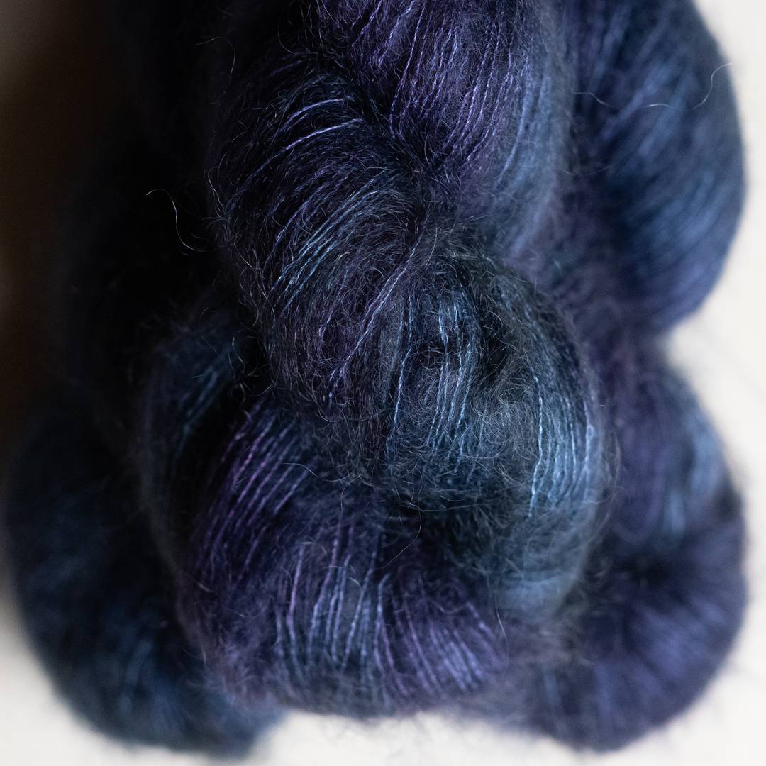It comes in a pearl white undyed base and a collection of hand dyed shades, inspired by light and dark tones of the boundless and remote space out there, but also enhancing some of our most favourite colors we had created on other yarns